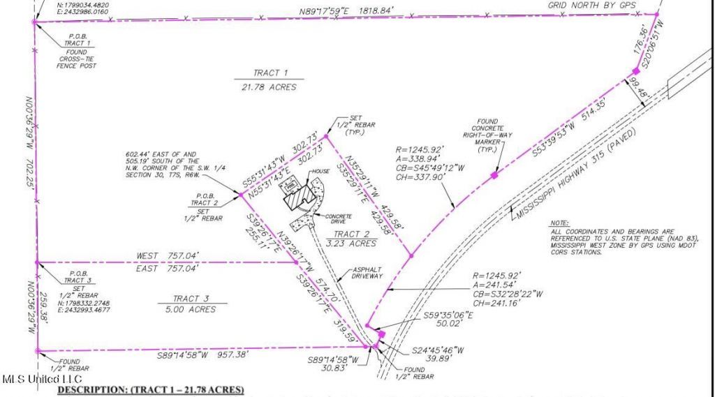 Beautiful piece of property with plenty of road frontage. Quiet secluded area but minutes from town. 2400 sq ft house and additional 3.24 acres next door available for separate purchase. Land could possibly be divided. 5 minutes to Sardis Lake. Plenty of wildlife on property for hunting.Shown as TRACT 1 in photo.
