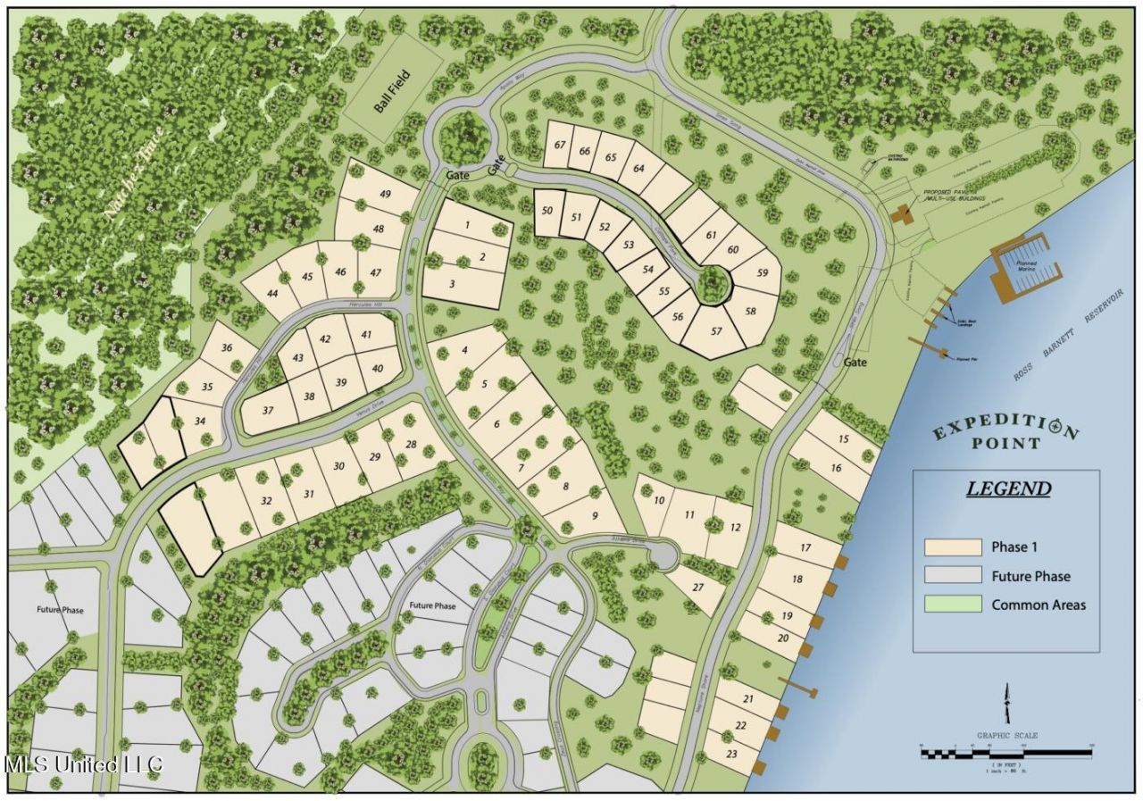 If you are looking for a new home site with many amenities look no further. Welcome to Expedition Point which is situated on a series of ridges elevated sixty feet above the water at the Barnett Reservoir and has its own exit directly off the Natchez Trace. This elevation allows views of the water from the majority of homesites, most adjacent to green space in a park-like setting. All underground utilities are in place. We have both small and large lots with a minimum 2,000 square foot home required. Expedition Point may also be reached from Rankin County by Highway 43.