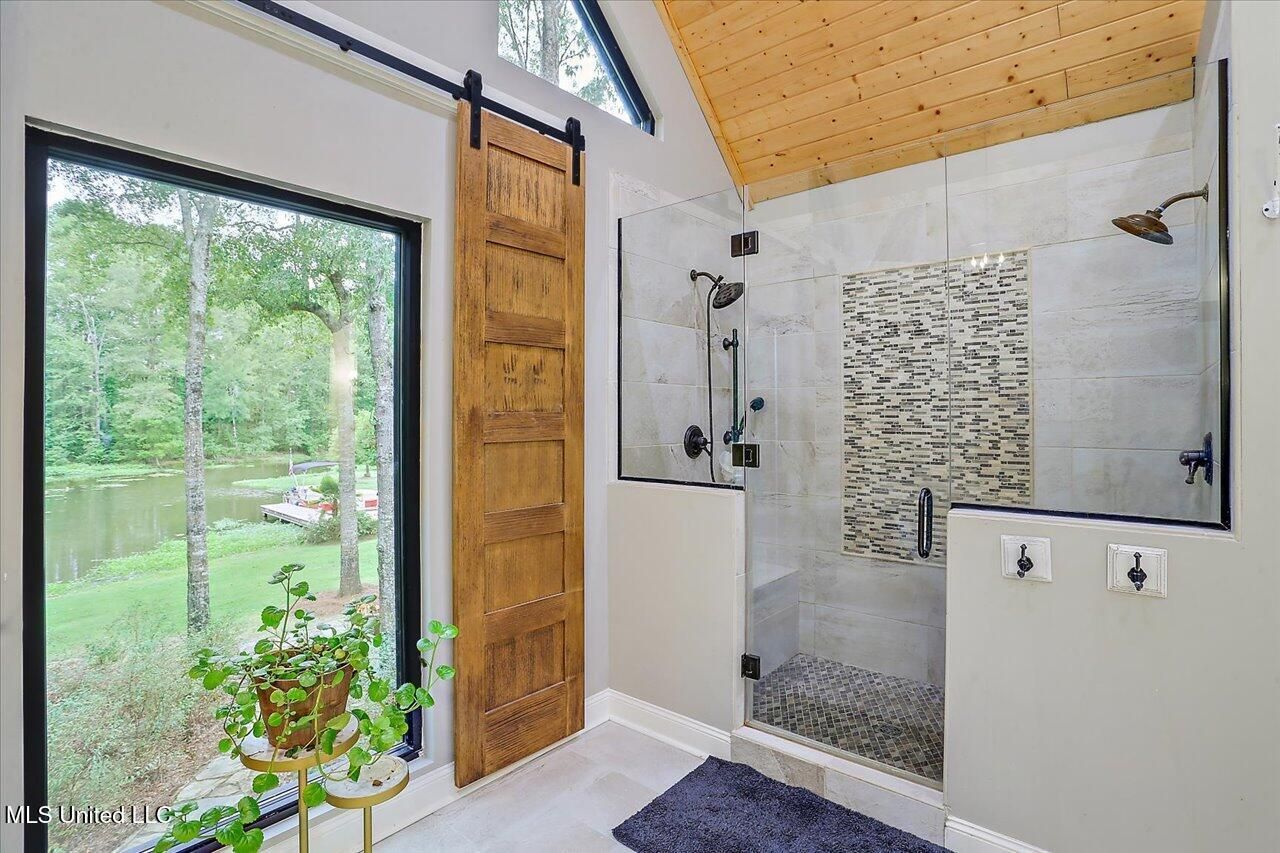 Waterfront Living at Its Finest in Fox Bay!Welcome to this stunning 4-bedroom, 3.5-bath home nestled along the scenic shoreline of the Reservoir in the highly sought-after Fox Bay community, located in the Northwest Rankin School District. With private water access and a dedicated boat slip, this home offers the ultimate lakefront lifestyle.Fully remodeled with a warm, rustic elegance, this brick beauty boasts an interior cabin-style design, complete with rich hardwood floors and soaring ceilings. The spacious split-floor plan offers privacy and function, with the luxurious primary suite on the main level, featuring a custom spa-inspired bathroom, double walk-in closets (one with a built-in gun safe), a soaker tub with a cozy fireplace, and elegant finishes throughout.Upstairs, you'll find three generous guest bedrooms, two full bathrooms, a versatile bonus room, and even a kitchenette, perfect for guests or multi-generational living.The chef's kitchen is the heart of the home, featuring an oversized island, granite countertops, walk-in pantry, farmhouse porcelain sink, and a built-in ice maker ? ideal for entertaining or everyday living.Step outside and embrace waterfront living with two enclosed porches, an outdoor kitchen with built-in grill, a large open deck, and breathtaking views of the Reservoir. Additional features include a 10x10 concrete storm shelter, extra storage under the back porch, and built-in storage sheds on both sides of the home.Don't miss your chance to own this one-of-a-kind lakefront retreat that perfectly blends comfort, luxury, and lifestyle.
