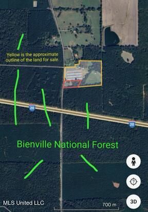 ATTENTION!!! In this listing for sale, approx 20 acres to be surveyed off by purchaser. Mobile home and remaing approx 6 are not for sale. See outlined pic for clarity. 3 pole barns on land, 40x60 work shed, 3 non-functioning chicken houses on property that can be torn down for materials. 1 additonal is in the process of being disassembled. Bienville National Forest across the road and to the side of property. Great space for country living. In Lake school district. Call or text for more information.