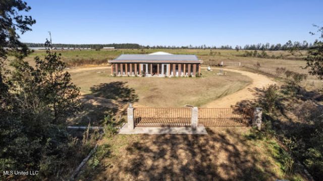 This 3274 sq feet home described as strong, sound and energy efficient sits on 2.5 acres of open pasture land in Bogue Chitto MS, and constructed with durable blocks and bricks. The entry sun porch is seamlessly connected to the common area through large glass rod iron decorative doors. Encased in floor-to-ceiling glass panels, the porch offers panoramic views of the surrounding landscape.The home features 6-bedrooms with each bedroom having its own en-suite bathroom.The home layout design is centered around a spacious and inviting common area, designed to be the heart of the home. There are high metal ceilings throughout the home that create a bold style giving it that grandeur industrial contemporary look. The attached commercial size garage is oversized with 4 roll up doors.Energy-efficient features, including double pane aluminum windows, energy efficient Amana PTAC (Packaged Terminal Air Conditioner units) in each room for individual temperature control, and the RiNNAI tankless water on demand heater system. This home is an excellent blend of traditional materials and contemporary design, making it perfect for large families or those who love entertaining. It blends custom craftsmanship with modern functionality. The construction is durable and resists fire, moisture and wear making it suitable for large, high use areas. If you are looking for a unique country home, this could be it! It is in the Enterprise School District as well.
