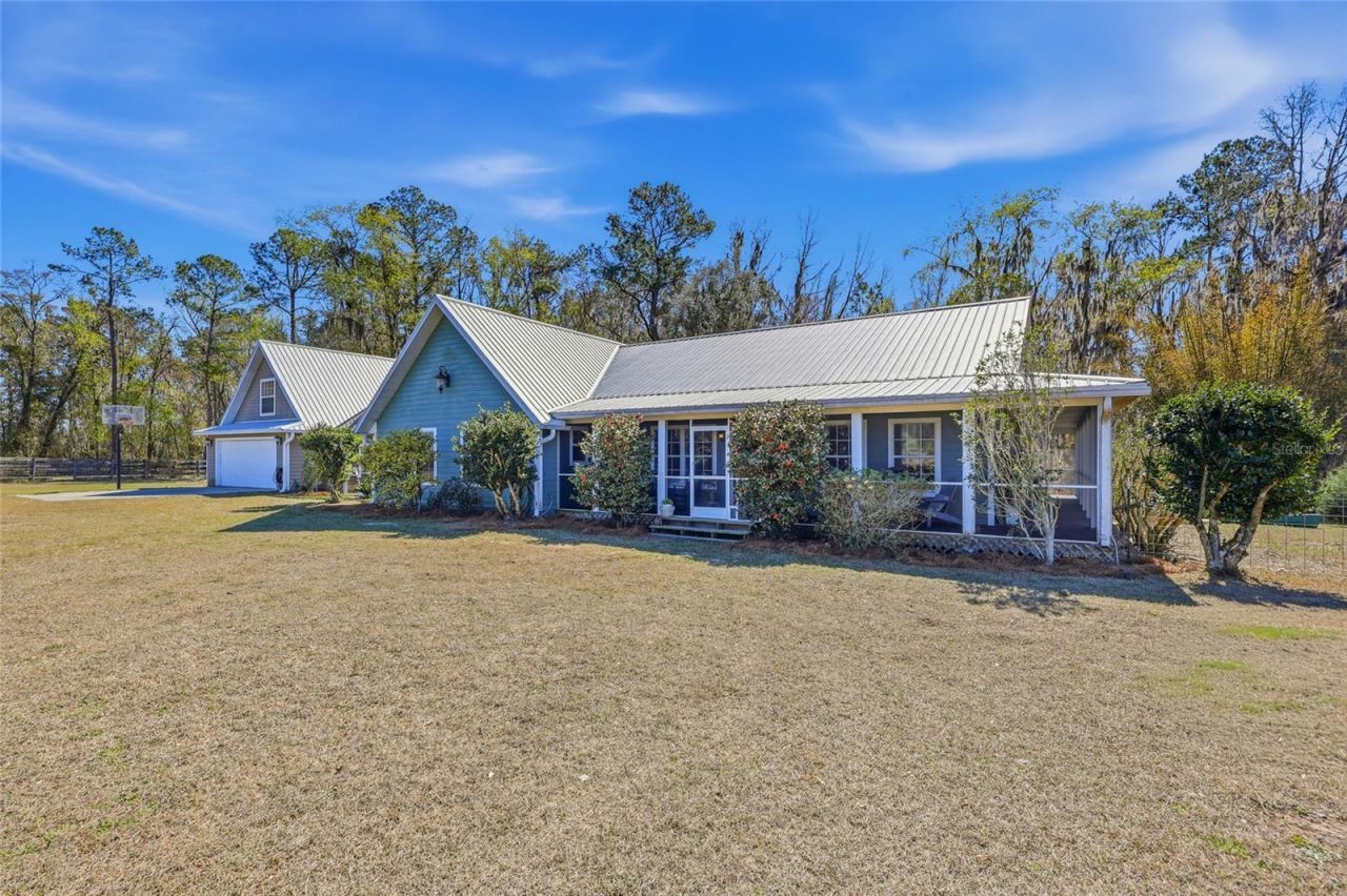 Escape to your own private paradise on six breathtaking acres, perfectly perched at ahigher elevation where panoramic views and a constant, refreshing breeze create anunforgettable setting. A private drive welcomes you home, offering the ideal balance ofpeaceful seclusion and convenient access-just minutes from I-75. This thoughtfullydesigned 4-bedroom, 3 full-bath residence blends comfort, charm, andfunctionality. Inside, the spacious living room showcases soaring vaulted ceilings and acozy fireplace, creating a warm yet airy atmosphere. The well-planned layout is ideal forboth everyday living and entertaining, featuring a formal dining room, a bright eat-inkitchen, granite countertops throughout, and a large island bar with beautiful butcherblock tops and seating. The generous primary suite serves as a true retreat, completewith a walk-in closet, dual vanities, and a spacious double shower. Outdoor living truly sets thisproperty apart. A screened-in wraparound porch provides multiple shady spots to relaxand take in the views. and A covered walkway leads through an expansivescreened patio-an exceptional space for year-round gatherings. Or, enjoy basking inthe sun and cool evenings under a canopy of stars on the landscaped backyard patio,surrounded by mature oak trees that enhance both the beauty and privacy of theproperty. Equestrian enthusiasts will appreciate the fully cross-fenced acreage with 3connected pastures, including a lit riding area adjacent to the barn andlarge shade trees in the back., A well-equipped three-stall barn and tack roomwith power, makes it ideal for horses, livestock, and all your animals. Designedfor country living at its finest, the property also features a large garage with a bonusroom, a durable metal roof (fully re-screwed in 2025), and a high-and-dry setting thatcaptures stunning panoramic views while maintaining a private and peacefulatmosphere. Ideally located just minutes from downtown Alachua and High Springs,with convenient access to Gainesville and Lake City, this property also offers closeproximity to HCA Florida North Florida Hospital, UF Health Shands Hospital, Universityof Florida, and Santa Fe College. Secluded, scenic, and exceptionally well-equipped forboth entertaining and equestrian living, this is the space, freedom, and lifestyle you'vebeen waiting for.