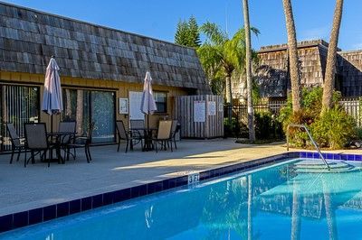 a modern designed 2 story floorplan, popular style courtyard space, that is private and fully screened in with tropical landscaping perfect for entertaining, gardening, and year- round enjoyment. Relax at the community pool and clubhouse and enjoy the proximity to beaches, fitness, shopping, dining. Recent updates: unit has been re-piped, new kitchen, new flooring, new ceiling fans, and popcorn ceiling removed. Full size washer/dryer in unit. Low HOA fees, Easy to show, dont miss this one!