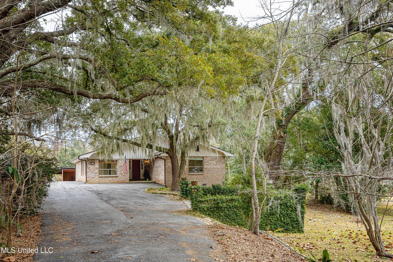 DOWNTOWN OCEAN SPRINGS home with all of the charm and character you expect from this historic area. Heart pine floors in the formal living room with gorgeous views of mature trees. Three huge bedrooms, each with its own full bathroom. The private main suite has high ceilings and a walk in closet. The cherry cabinets, granite countertops and chef's gas range make this a joy to cook in with peaceful views from the oversized windows. A well equipped laundry room with custom cabinets, granite countertops and room for all the storage you could want. The family room opens onto a large deck for ease of outdoor entertaining. The huge yard is fulled with mature oaks, a grape arbor, lots of room for your garden, a green house and guest parking in the front. The 3 car carport offers storage as well. One additional covered spot is perfect for your golf cart. Only one block to Front Beach and two blocks to downtown restaurants and festivals. Best location ever! Come see it today!
