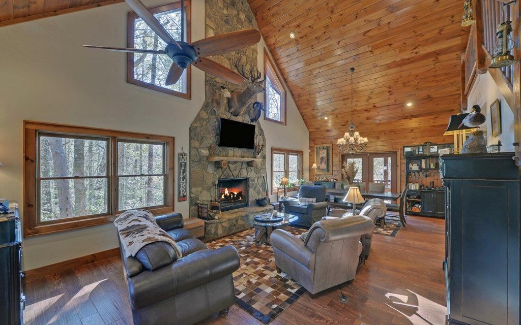 Craving true privacy and room to expand? Set on 3.9 acres, this log home offers seclusion and flexibility, plus an additional unrestricted lot, perfect for a camper, guest cabin, or future second home. Tucked away with walkable access to your own creek, it's the kind of setting that invites slow mornings and star-filled nights. Vaulted tongue-and-groove ceilings, a stone fireplace, and an open kitchen with island and breakfast bar create warm, rustic elegance inside. The primary suite offers deck access, a double vanity, and separate tub and shower. Entertain or unwind on expansive covered rear decks designed for lounging, grilling, or gathering. A second fireplace warms the lower family room, while the outbuilding adds practical storage. With broadband fiber optic internet on the way, you'll stay connected without giving up the peaceful, private lifestyle you've been searching for.