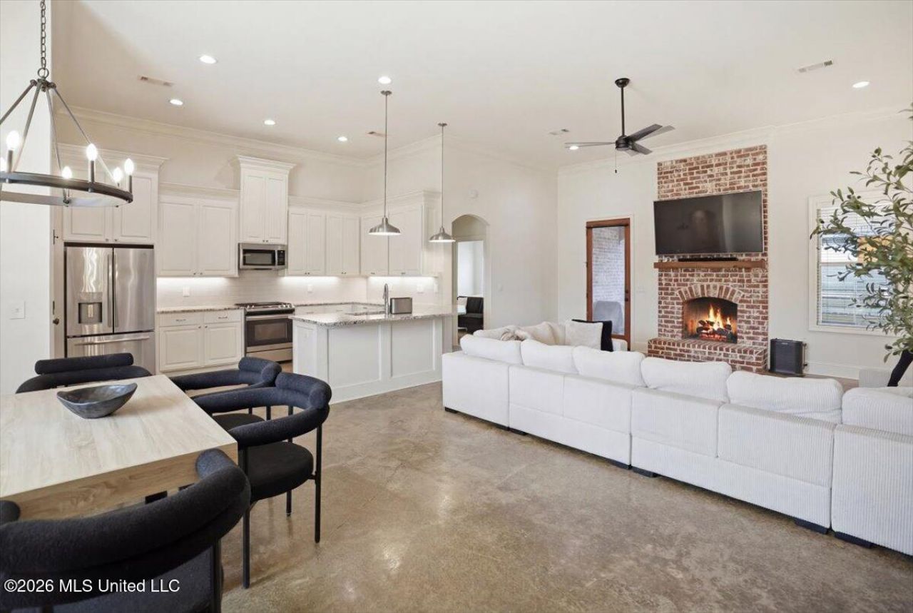 Huge price drop!Welcome to 607 Gloucester Way, located in the highly sought-after Kensington subdivision in Flowood! This gated community offers resort-style amenities including a beautiful neighborhood pool, clubhouse, and a stocked lake perfect for fishing and relaxing afternoons.This stunning freshly painted 4-bedroom, 2-bath home features a desirable split floor plan designed for both comfort and functionality. The spacious kitchen is a true centerpiece, complete with a large bar, gorgeous granite countertops, custom cabinetry, and a gas range--opening seamlessly into the living room, making it ideal for entertaining.Enjoy gatherings in the formal dining room, which easily accommodates a large table for hosting family and friends. The private primary suite is generously sized and features a spa-like bathroom with a large tiled shower, separate garden tub, and plenty of space to unwind.Step outside to the covered back porch with a beautiful tongue-and-groove ceiling--perfect for enjoying outdoor living year-round.Don't miss your chance to call this exceptional property home--schedule your private showing today!