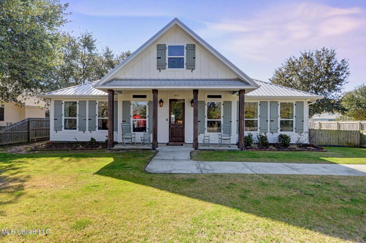 Modern farmhouse elegance meets Gulf Coast living.Step into one of Shieldsboro Square's most thoughtfully designed homes -- a stunning custom modern farmhouse where every detail has been carefully considered. Soaring 10-foot ceilings, walls of natural light, and rich red brick accents set the tone the moment you walk in. Luxury vinyl flooring flows through the open-concept layout, making the space feel as expansive as it looks.The kitchen is the heart of this home, and it shows. Granite countertops, custom cabinetry, a gas cooktop with pot filler, and a dedicated coffee bar make it as functional as it is beautiful -- topped off with stainless appliances and storage that never runs out.The split bedroom plan offers privacy where it counts. The generous primary suite features a spa-style walk-in shower, dual vanity, and a custom closet designed to impress. Three additional bedrooms, 2.5 baths, a large upstairs bonus room, and a spacious laundry room with a transom window round out a floor plan that truly works for real life.Outside, the covered kitchen -- complete with a gas grill, sink, fireplace, and TV hookup -- is made for evenings with friends. A fully fenced yard gives kids and pets room to roam, while front and rear driveway access adds everyday ease.Life in Shieldsboro Square comes with its own perks -- a community pool and clubhouse, all maintained and protected by an HOA that keeps the neighborhood looking its bestAnd the practical perks are just as compelling: X Flood Zone designation, a metal roof, and high elevation keep insurance costs refreshingly low. All this, just a golf cart ride from Old Town, the Depot District, and the beaches of Bay St. Louis.