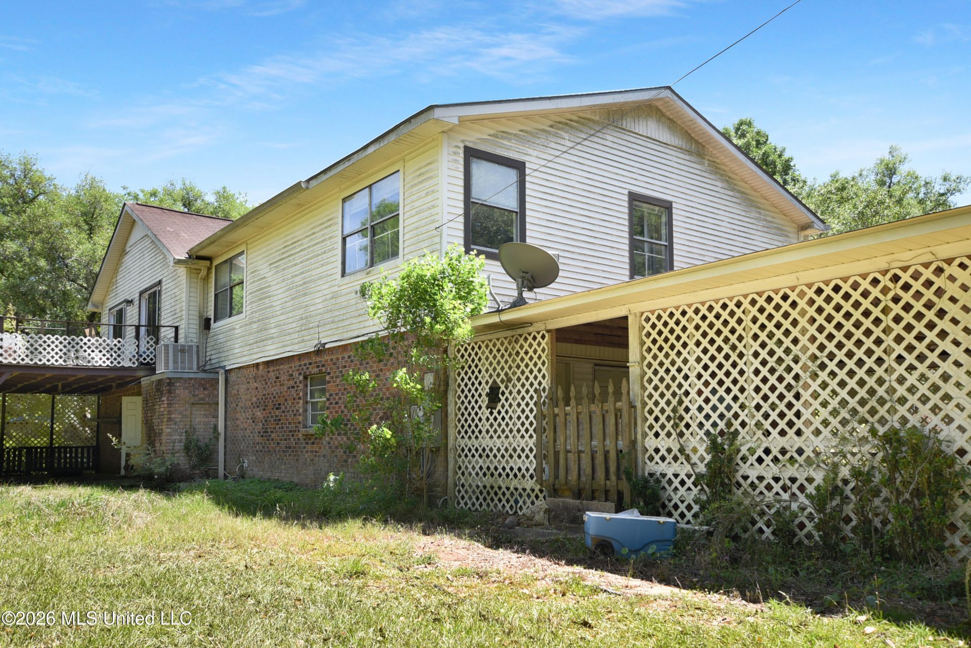 I have been a Broker for over 50 years. This one excites me. Almost 2.4 acres on the most oyster rich waterway in Mississippi, with unlimited access to the Gulf, teeming with speckled trout, shrimp, crabs (soft shelled also) with two boat slips on navigable water. Property is loaded with more than two dozen live oaks and all on dry land. Just minutes from I-10 and Mobile. Minutes to Hwy. 90, Hwy 63, and Interstate 10. Half a mile from a new County maintained boat launch. Home is elevated and in need of repairs. Garage, carport, fireplace under a cathedral ceiling and dining room views of the Bayou beyond. Walk through kitchen with terrarium in front of sink and all opens onto a deck overlooking an oak framed vista of the Bayou. There is a franklin stove in the basement (under the house) it is built up. That has a bar and grill and (fireplace.). There is much work to do..........BUT wow!