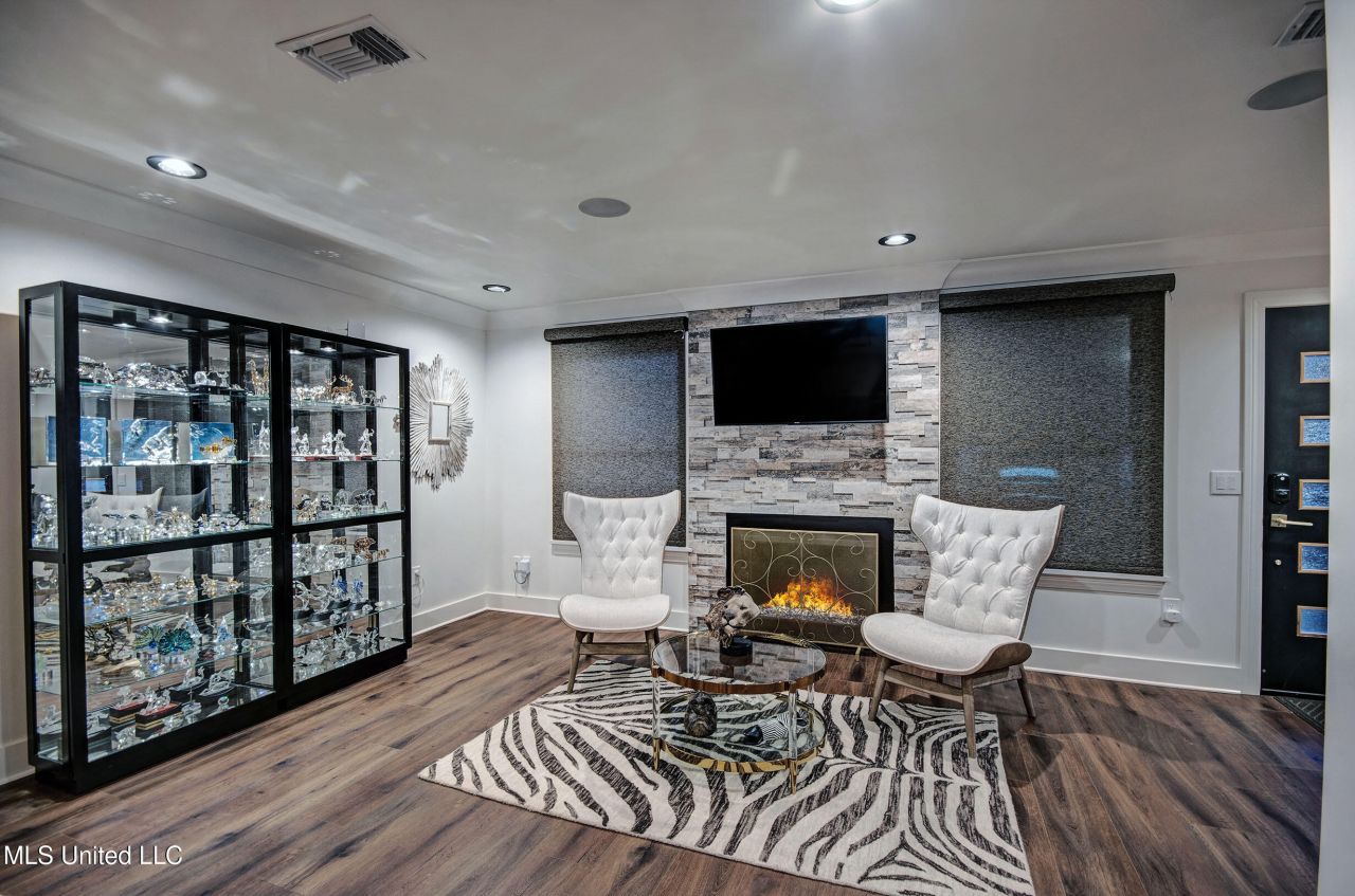 Located at 92 Breaker Lane in Ridgeland, MS, this beautiful completely renovated 2 story ''smart home'' condominium is in the desirable Breakers Community and offers a serene lifestyle against the backdrop of the Ross Barnett Reservoir. Spanning an area that brings comfort and unbinding space, this condominium provides an ideal setting for both relaxation and entertainment. Upon entering the condominium, you will find a charming living room with a fireplace to curl up with a good book to help unwind your day. Through the open layout you enter the entertainment section. Everyone will always end up here. Complete with beverage and wine cooler, ice maker, and an enormous television and audio center. Adjacent to the living room is a gourmet kitchen that is sure to delight any chef with complete top of line appliances and designed for culinary creativity. Afterwards is the den characterized by a striking glass wall that offers unobstructed views of the mesmerizing sunsets. Next step out to your 25' x 40' foot private deck with two boat docks. The condominium boasts a massive primary bedroom that includes an office wall, making it a perfect blend of comfort and productivity. The room opens to a patio where you can unwind and take in the beautiful sunset views. The bathroom is equally impressive, featuring a separate walk-in shower and tub, adding to the space's overall luxury. One of the standout features of this property is its fantastic location. The condominium sits on the 24,000-acre Ross Barnett Reservoir, a haven for various water sports such as boating, skiing, jet skiing, paddleboarding, and kayaking. The area is also perfect for animal watching and fishing, making it an angler's dream with its diverse array of sport fish including bass, crappie, and bream. The Reservoir is even a host site for a Bass Masters Tournament, adding a touch of excitement for fishing enthusiasts. The Breakers Condominium community itself provides a tranquil retreat with a friendly neighborhood vibe, surrounded by natural beauty yet conveniently close to urban amenities. Overall, this condominium at The Breakers offers an exceptional combination of spacious luxury living, scenic beauty, and a plethora of outdoor activities right at your doorstep. Whether you're an avid adventurer or someone seeking a peaceful living environment with stunning sunset views, this property accommodates a blend of each.